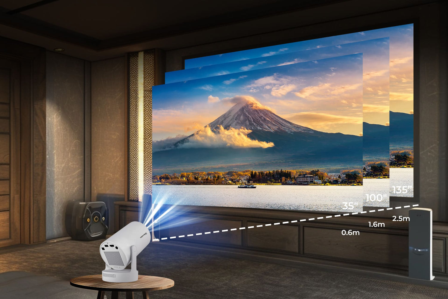 • Projection Size: 35–135 inches